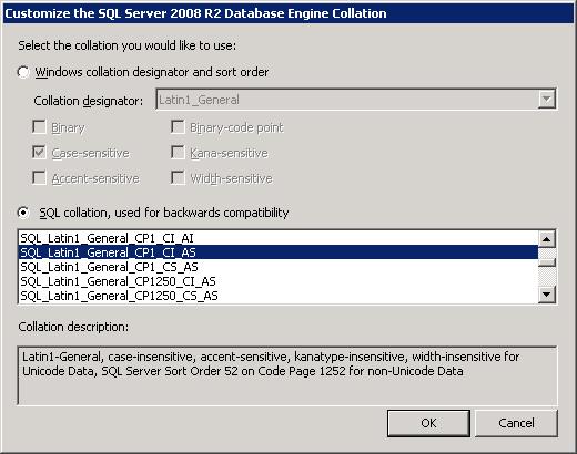 Ensure that the database collation is set to SQL_Latin1_General_CP1_CI_AS (note this is a backwards compatible collation).