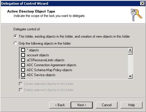 Delegate control to the SCCM server. Create a custom task to delegate and choose ‘This folder, existing objects in this folder and creation of new objects in this folder’