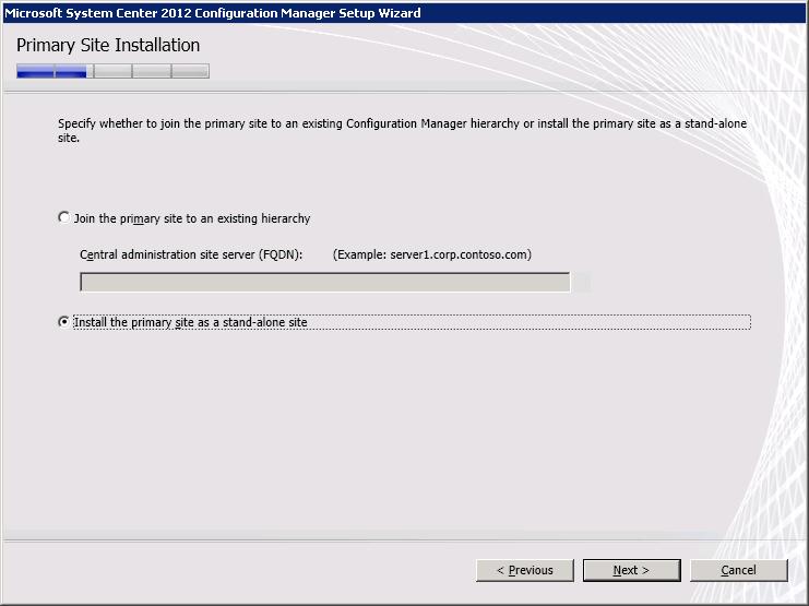 Install as a Stand-alone SCCM Site.