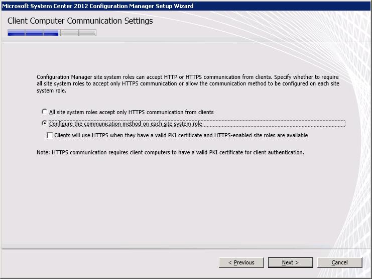 Select ‘Configure the communication method on each site system role’.