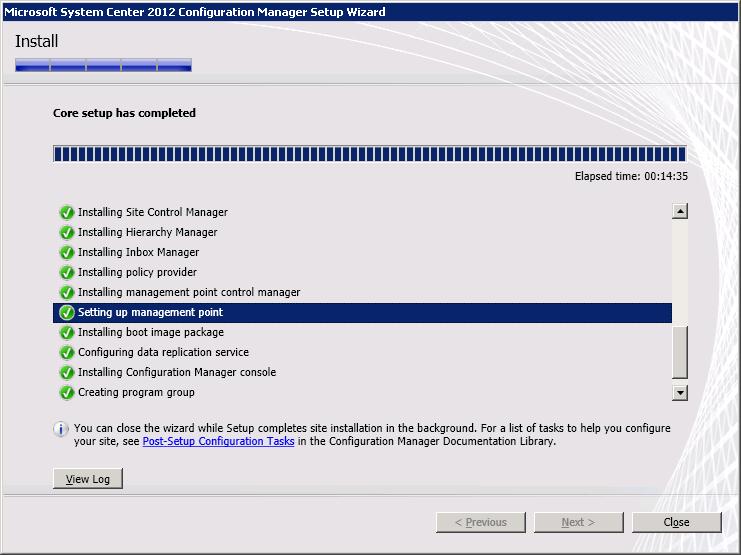 SCCM 2012 SP1 is now installed into your domain and you can start configuring the Site Server to get clients out to your machines.