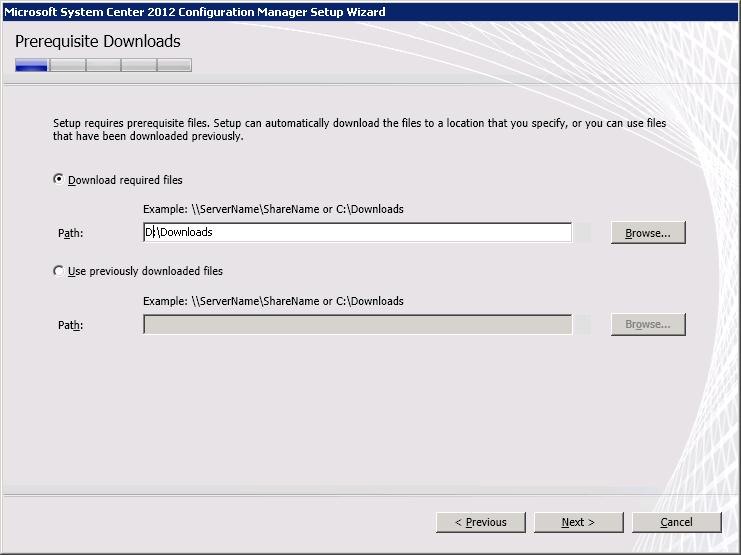 Create a folder to download SCCM pre-req files and point the SCCM install to the folder.