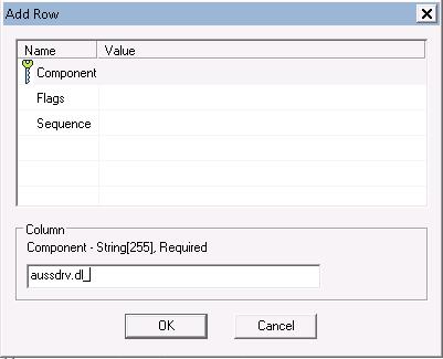 In the component field paste in the component copied earlier, in this instance aussdrv.dl_