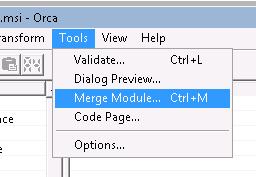 Open Orca and open the created MSI file. Click Tools>Merge Module.
