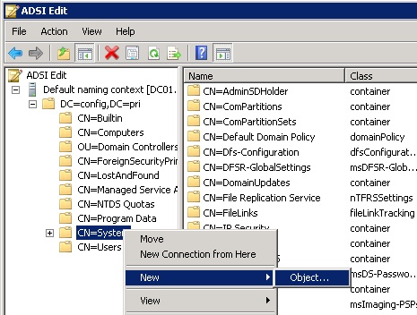 Connect to a domain controller and load ADSI Edit. Under the System OU create a new Object.