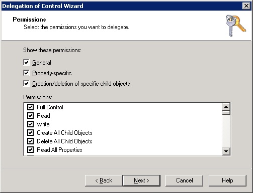 Delegate control to the SCCM site server to the newly created container in AD Users and Computers. Create a custom task to delegate and choose ‘This folder, existing objects in this folder and creation of new objects in this folder’