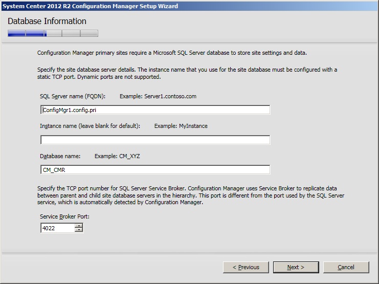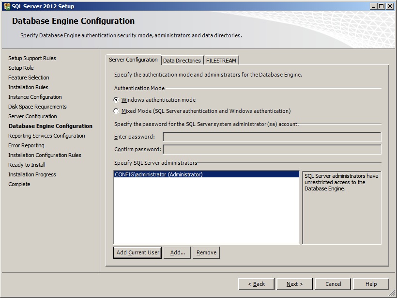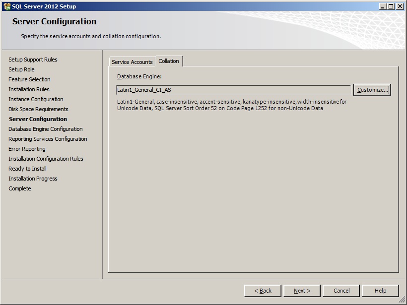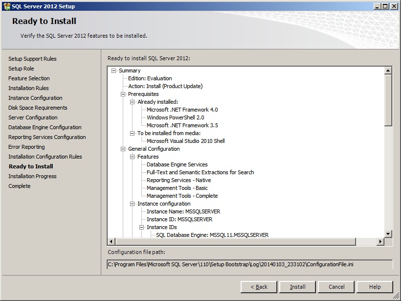 SQL Server 2012 SP1 is being installed as the SCCM database.
