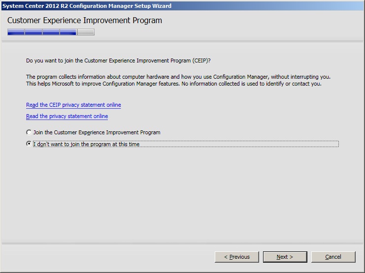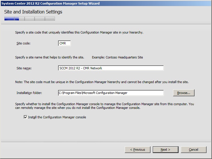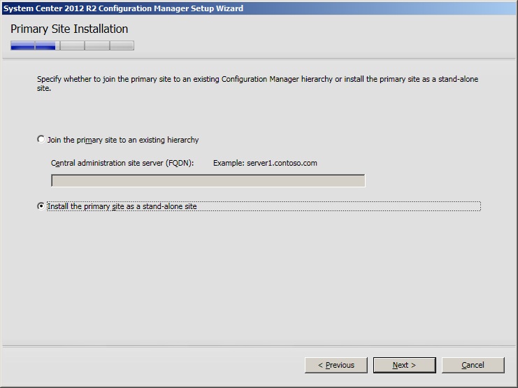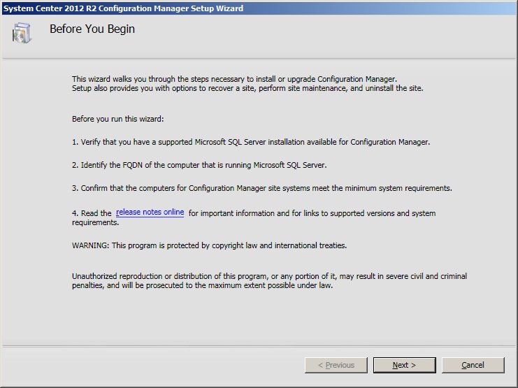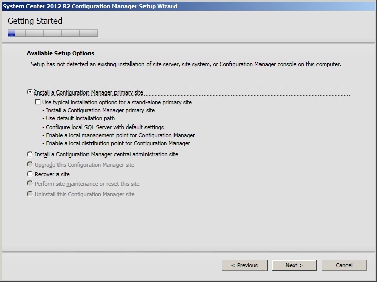The following guide will take you through the installation of SCCM 2012 R2 with a simple Primary Server approach and with the SQL server located on the same device. It assumes that no earlier version of SCCM is installed in the Active Directory domain it is being installed into.