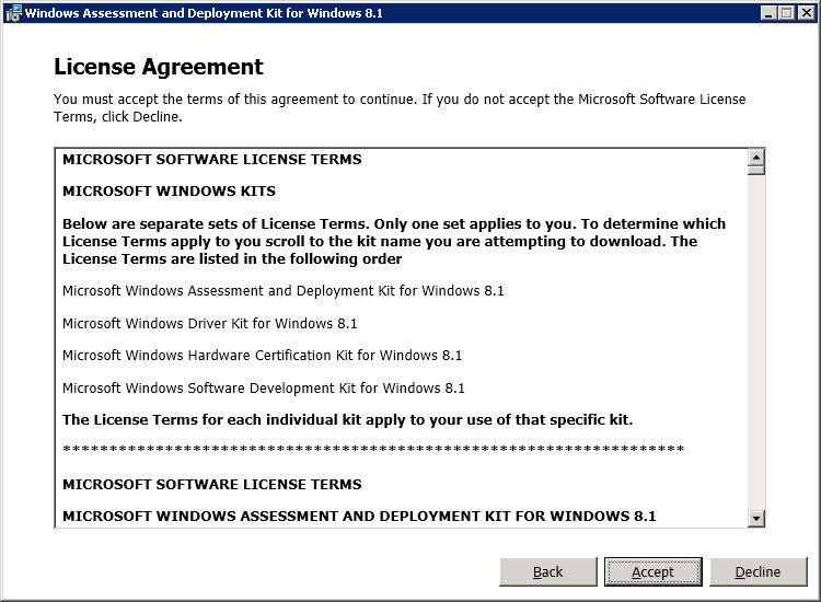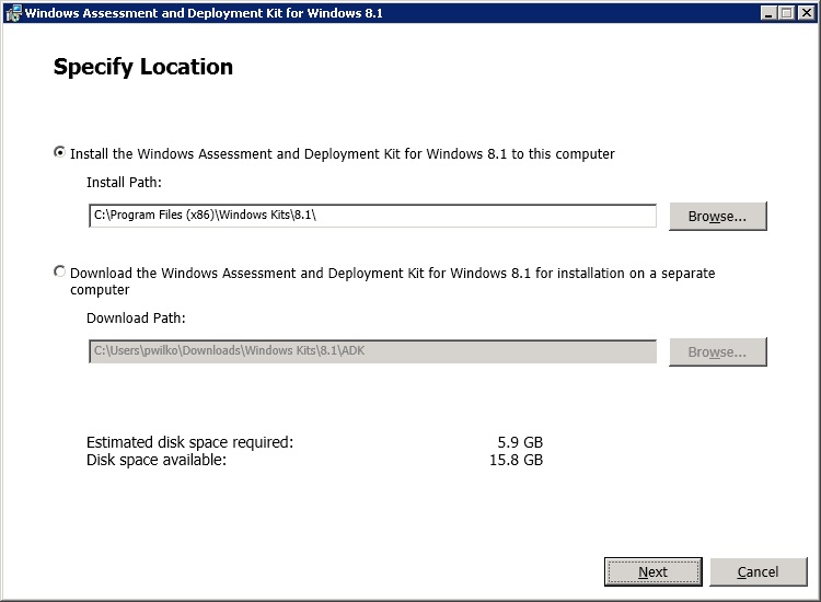 Accept the default download location for the ADK content.