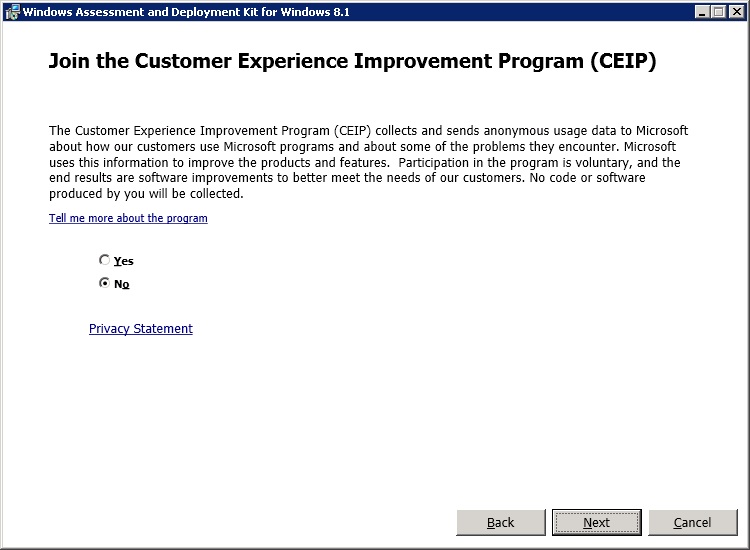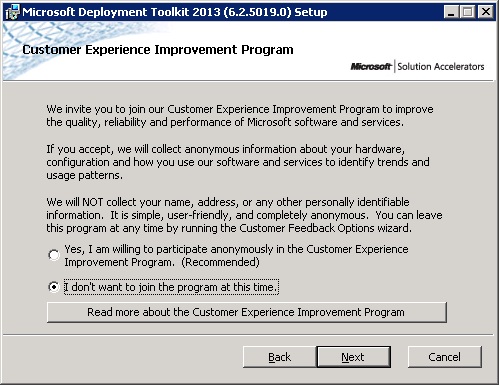 Decide whether to join the CEIP and click Next.