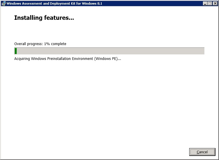 Select Deployment Tools, Windows PE and USMT from the features and click Install.