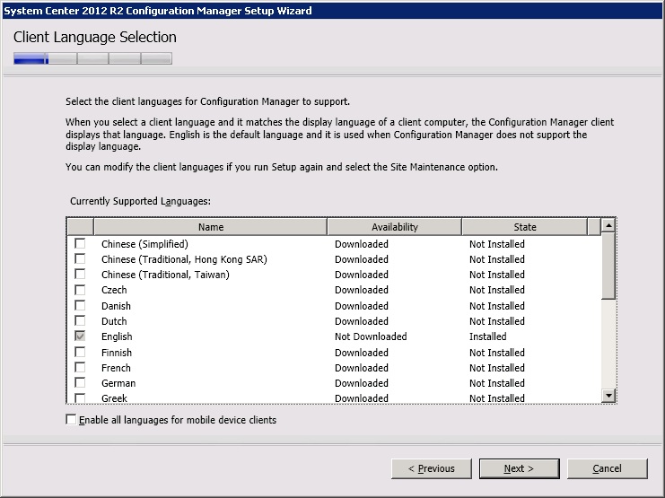 Select Client languages to install. Click Next.