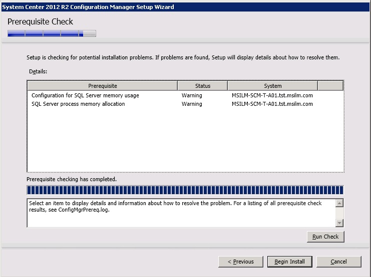 Address any pre-requisite failures and click Begin Install.