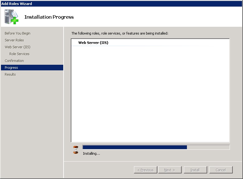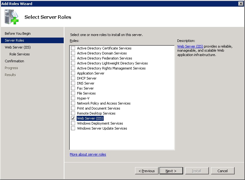 Connect to your remote server allocated for the WSUS role and load Server Manager. Choose Add Role. Select Web Server (IIS) and click Next.