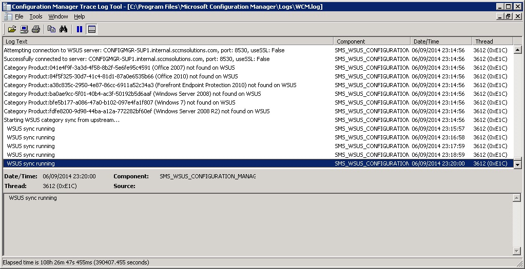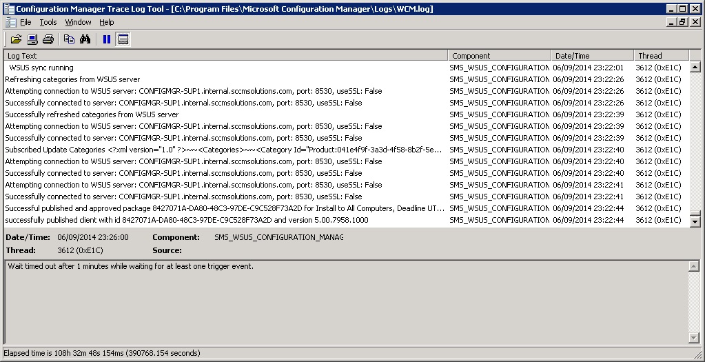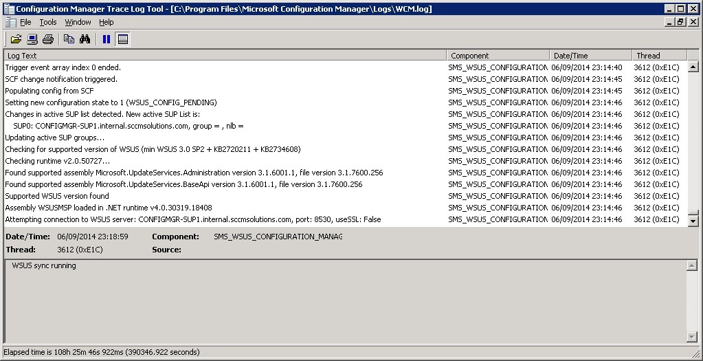 The sync can take a while. Once complete the following will be reported in the WCM.log.