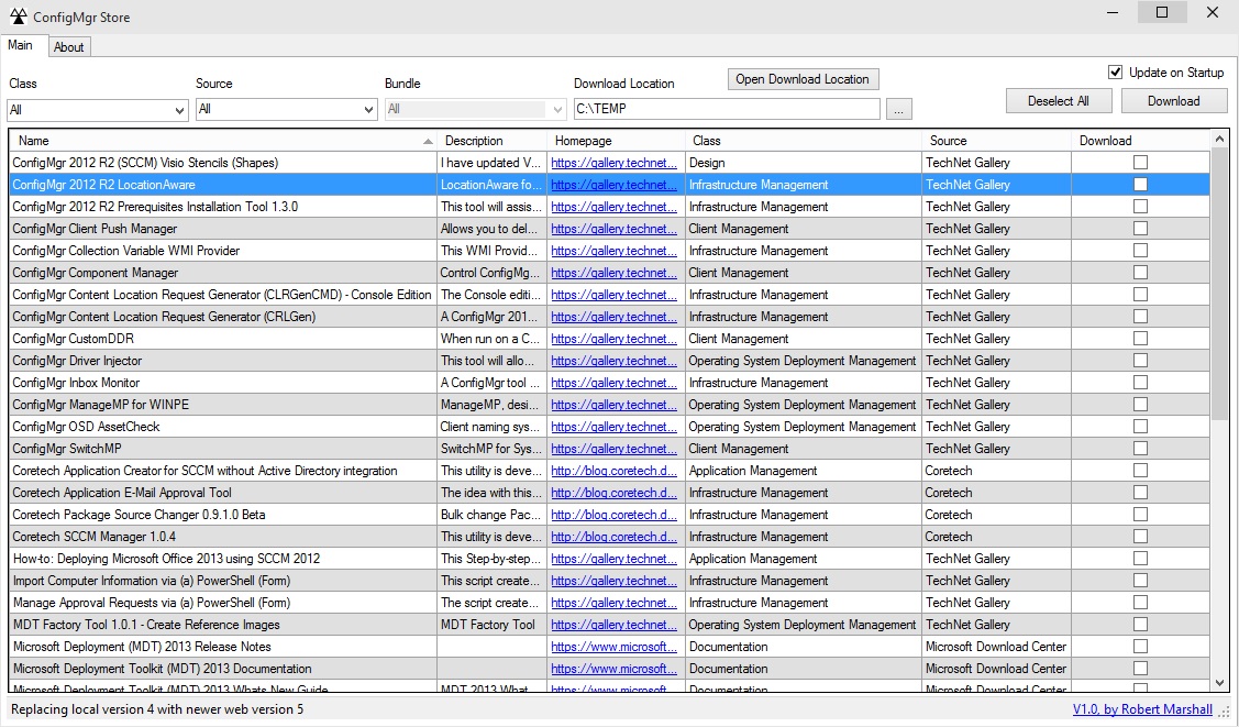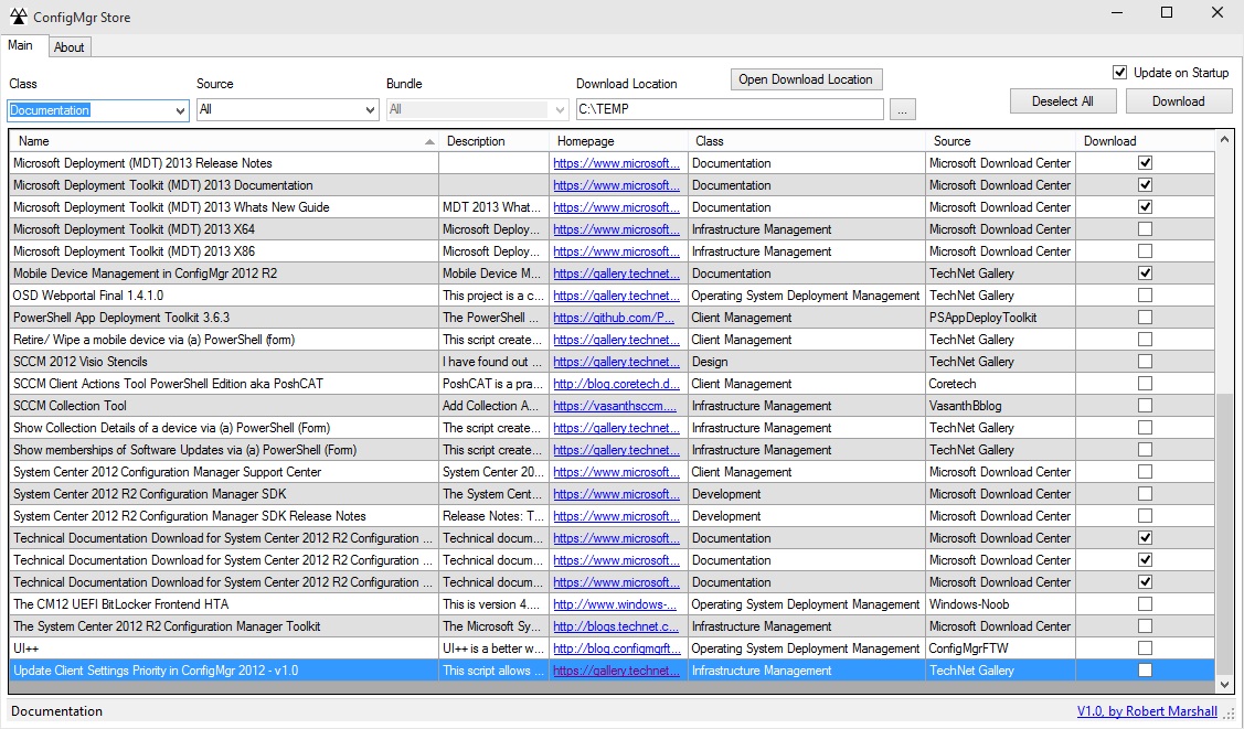What started as an idea on an email thread only a few days ago has blossomed into a full tool developed by ECM MVP Robert Marshall. He’s beavered away to produce an App Store for all your favourite ConfigMgr tools, scripts and downloads and he’s developed this thing at rapid speed.