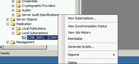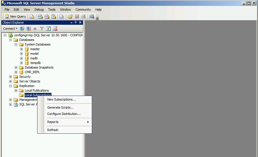 Navigate to Replication>Local Subscriptions. Right click and choose New Subscriptions.