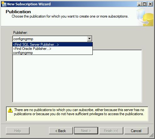From the drop down menu choose ‘Find SQL Server Publisher’.