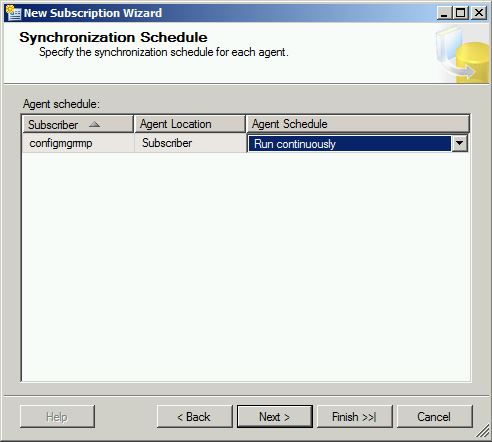 From the Subscription Database drop down select the database you have created <sitecode>_REPL. Click Next.