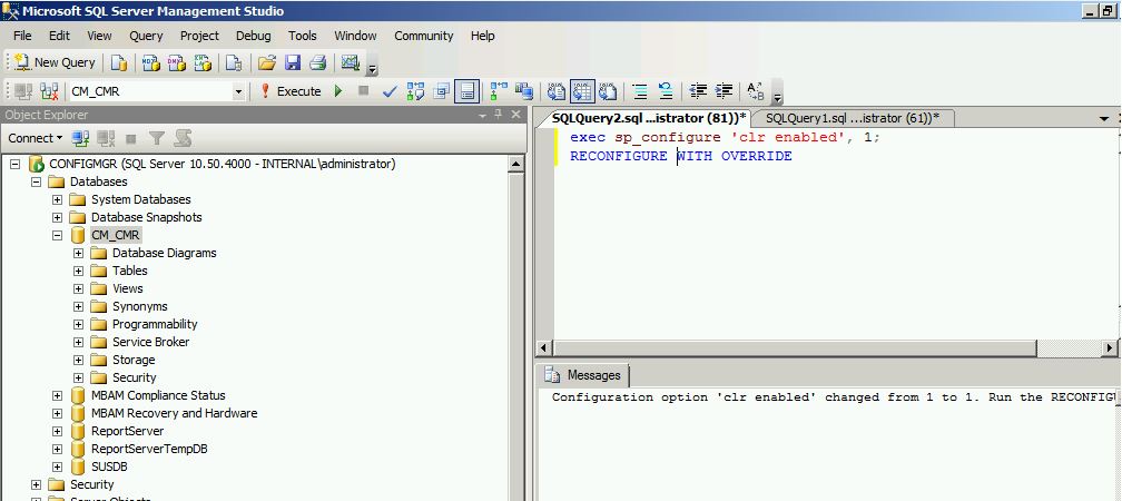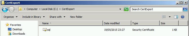 Copy and past the sql.cer onto the site database server. In SQL Management Studio connect to the ConfigMgr database (CM_<sitecode>) and run the following query: