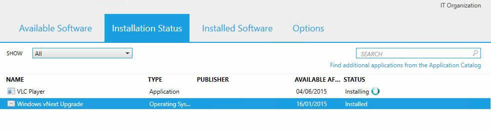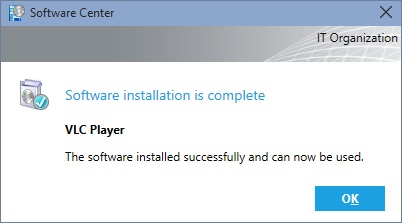To test the Application Catalog functionality with the site server down, I have changed my deployment of VLC Player to be deployed against a user collection and targeted at my user account.