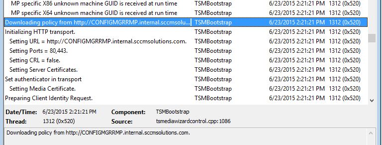 Next the site server SMS services were taken offline and the VM booted again to the Task Sequence environment. The policy for device is downloaded from the replica MP.