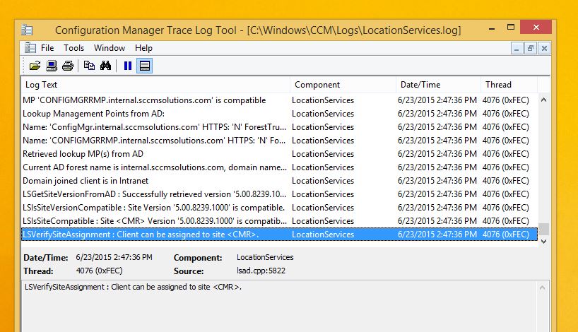 and checking the ClientLocation.log I can see the switch of assigned MP.