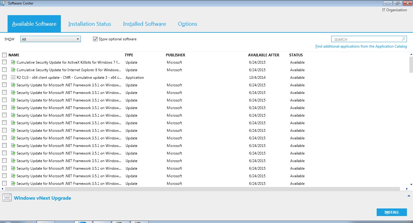 Checking the UpdatesDeployment.log on the device I can see that evaluation has taken place and a further 123 updates are available to the Win 7 desktop.