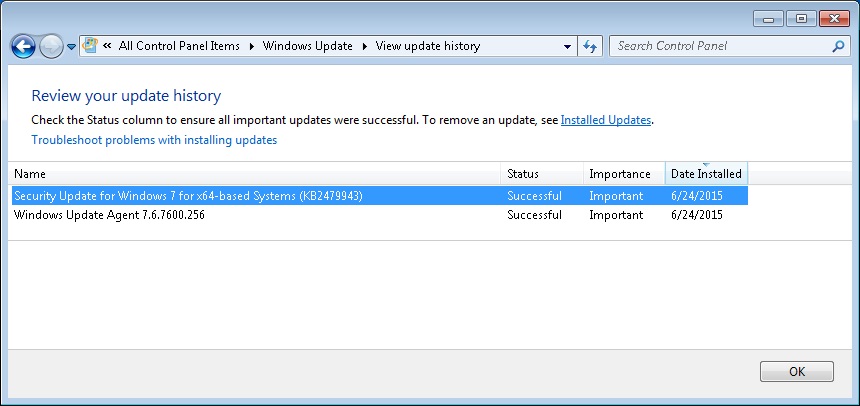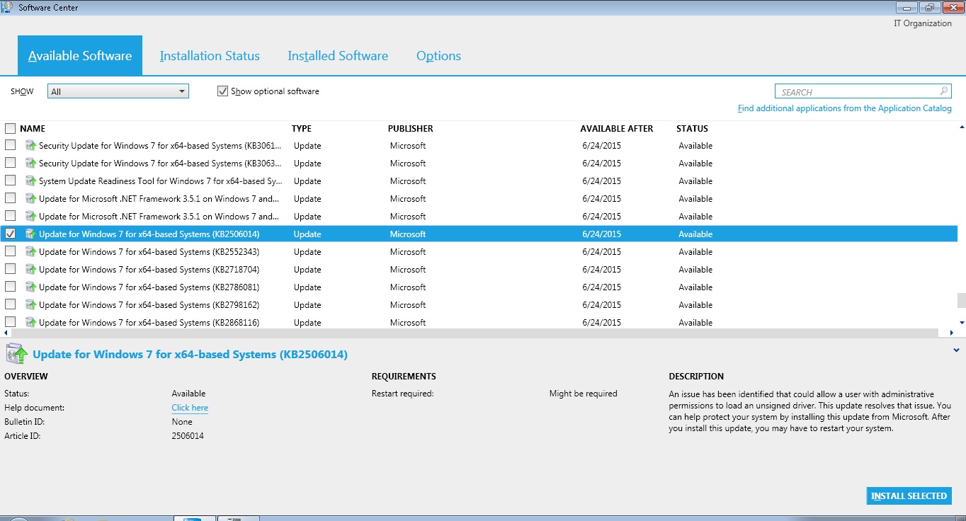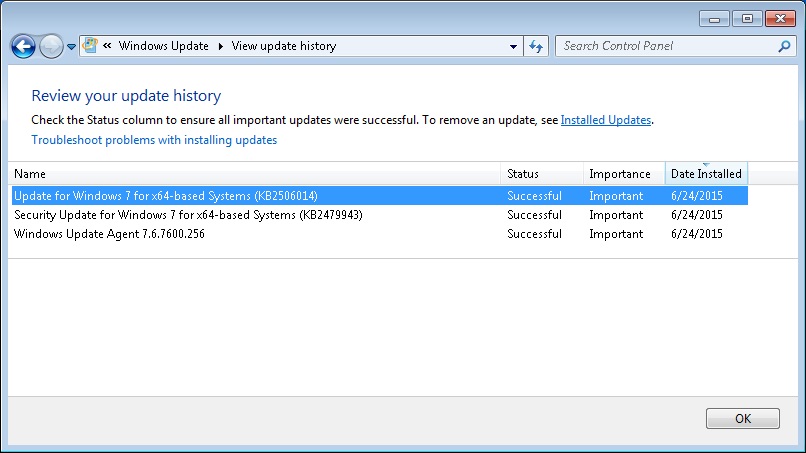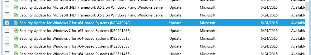 Prior to the systems being taken offline the Windows 7 desktop has the following Software Updates targeted at it.