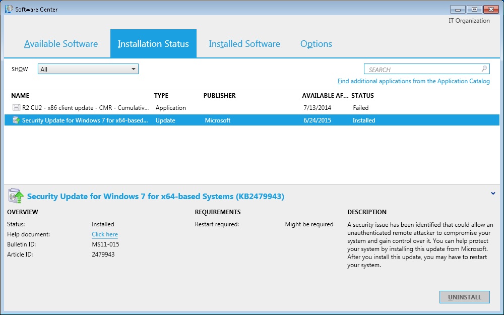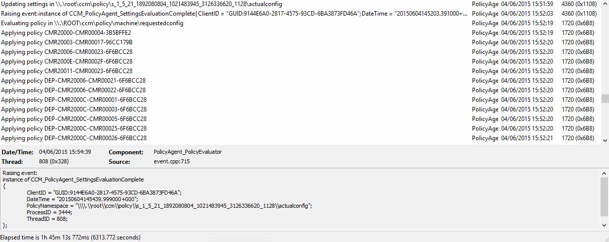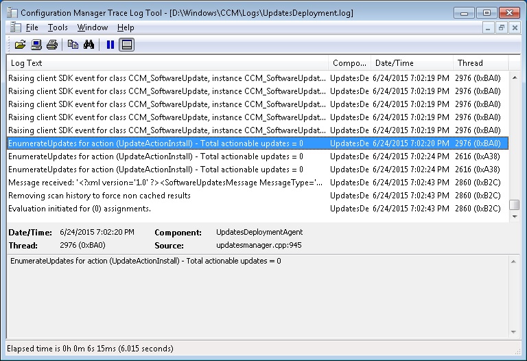 After powering up the Windows 7 device, policy was updated against the replica MP and a ‘Software Update Deployment Evaulation Cycle’ action was run.