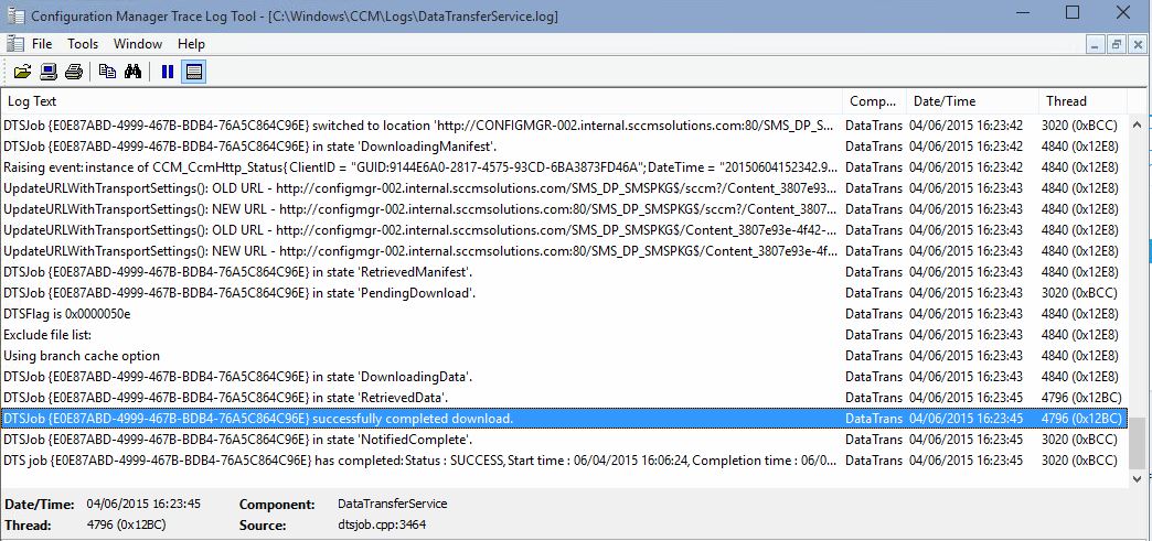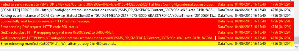 Prior to adding the DNS change I was seeing the following in my DataTransferService.log, along with a Downloading 0% in the Software Center.