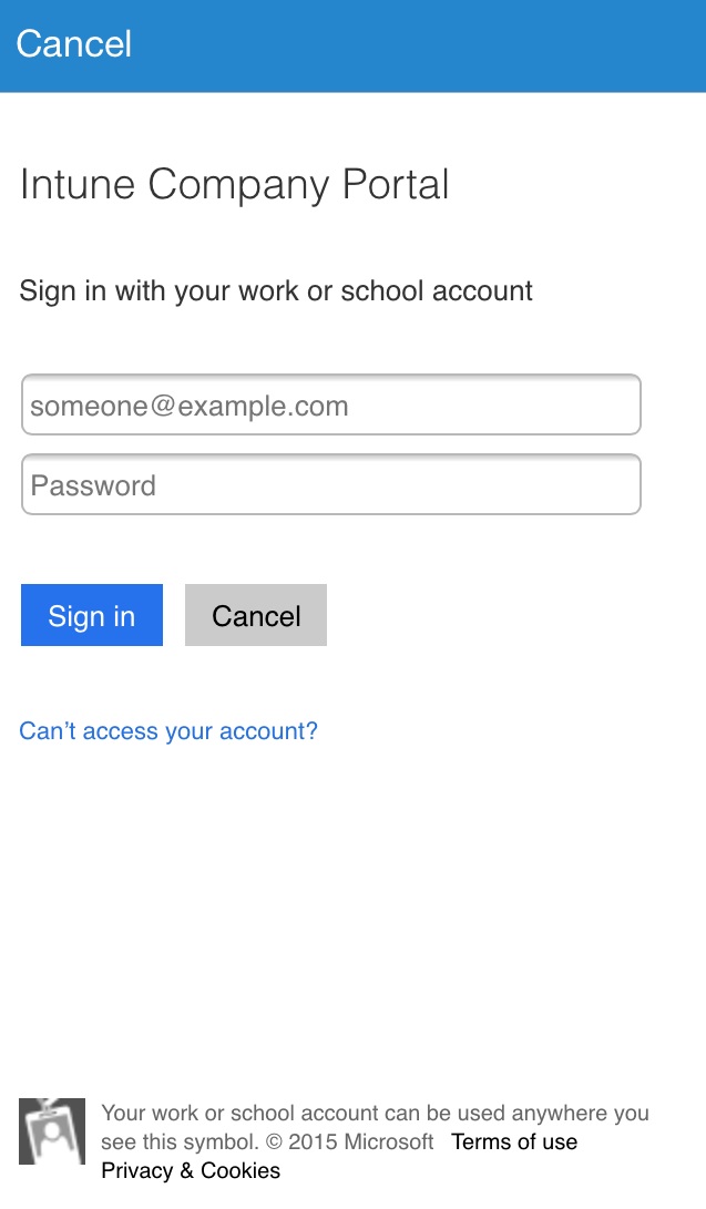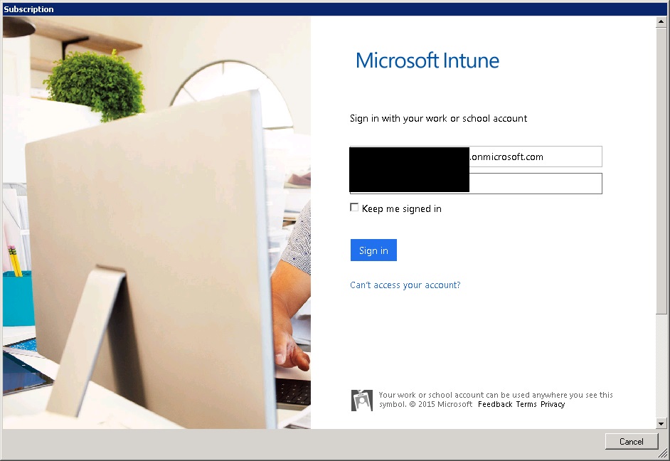 Sign into the Intune portal with your onmicrosoft.com administrative account.