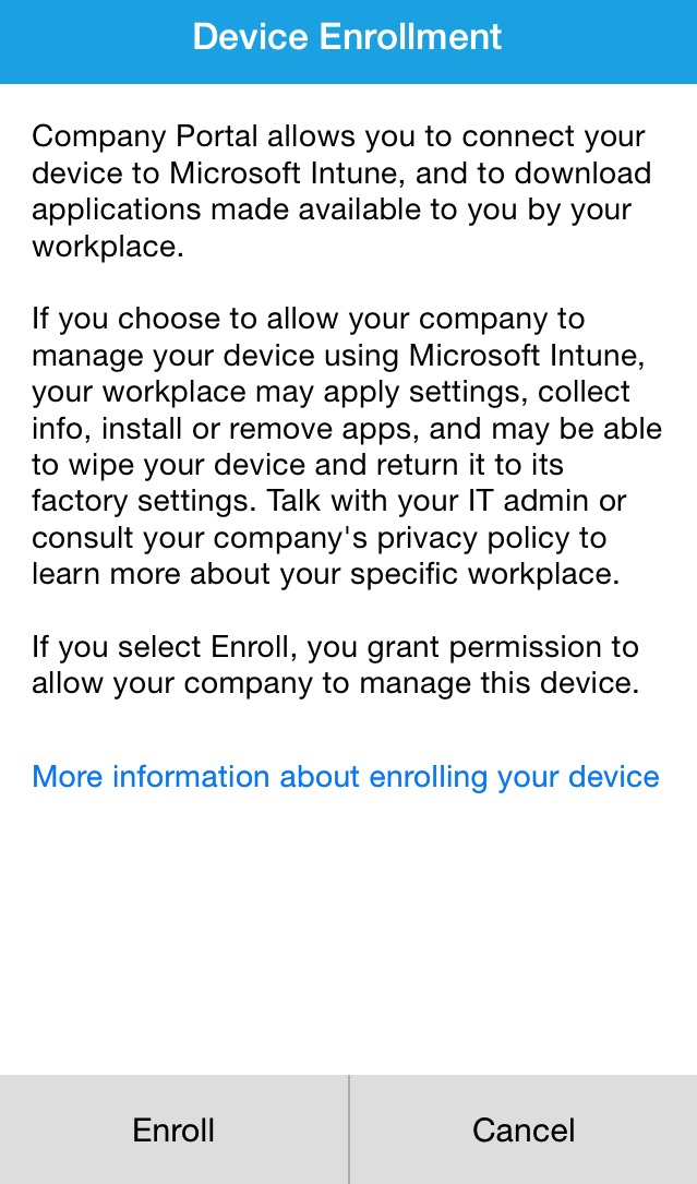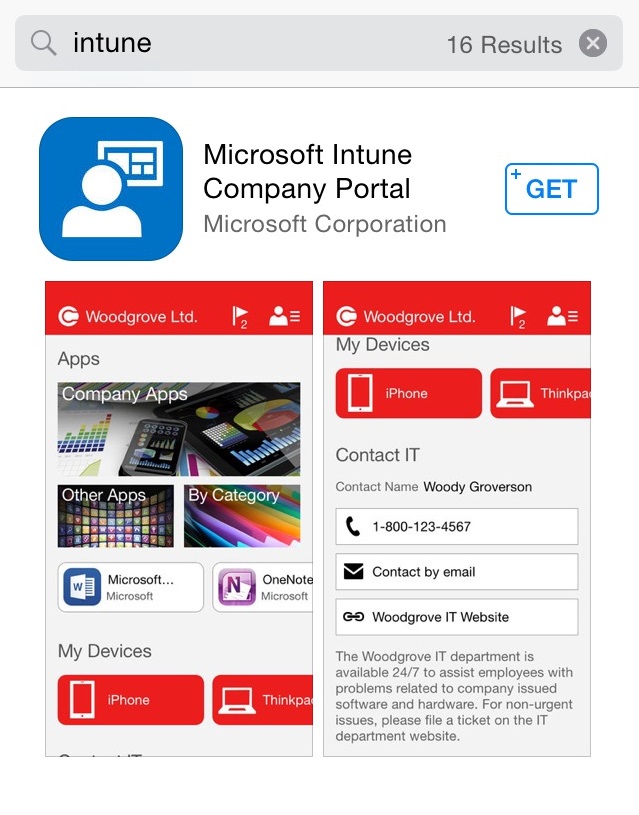 On an iOS device go to the App Store and search for intune. Get the Microsoft Intune Company Portal app.