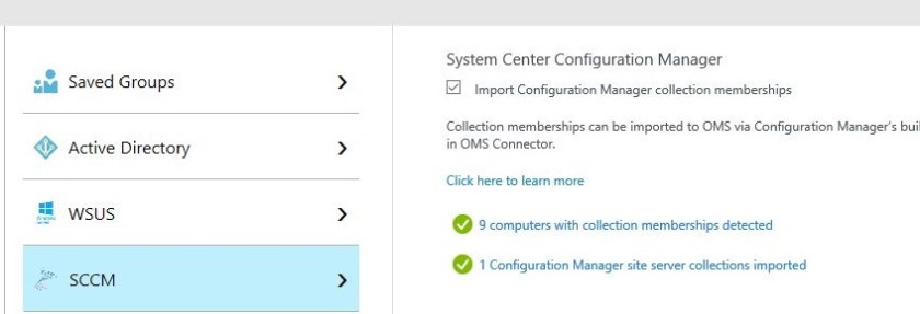With the agent installed, head back to the OMS portal and in the Settings menu choose Computer Groups>SCCM and tick the Import Configuration Manager collection memberships checkbox.