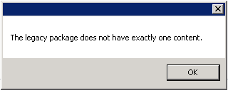 Running the Content Library Explorer tool, I received the error ‘The legacy package does not have exactly one content’. I had seen this before and
