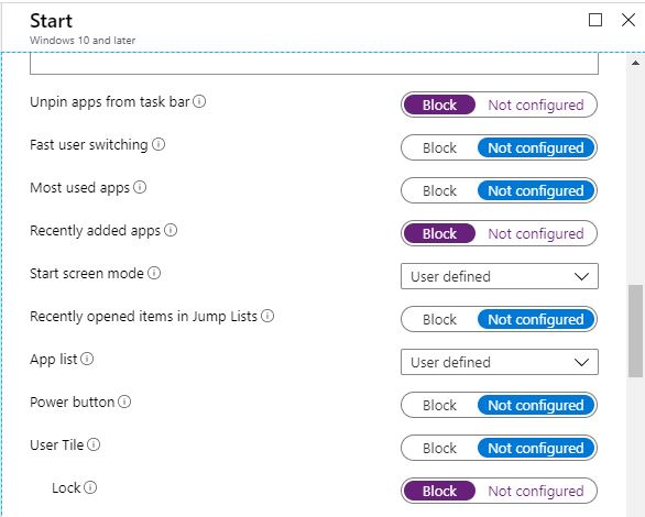 - Unpin apps from task bar – Block