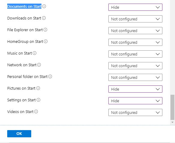 Via Intune, we have direct access to some of these Policy CSPs when creating a device configuration. For this simple demo, we are going to manipulate the Policy CSP – Start to configure the appearance of items on the Start Menu. A full list of the Policy CSP – Start settings and which edition and versions support the settings is documented here and it’s always recommended to confer with the documentation. If you find anything wrong or amiss the documentation is editable via GitHub and you can create a fork, edit, submit for approval, at which point Microsoft will validate and action accordingly.