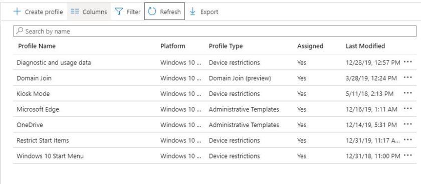 Click All Services\Devices\Configuration profiles then Create profile.
