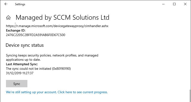 Next, scroll to the Device sync status section and click Sync.