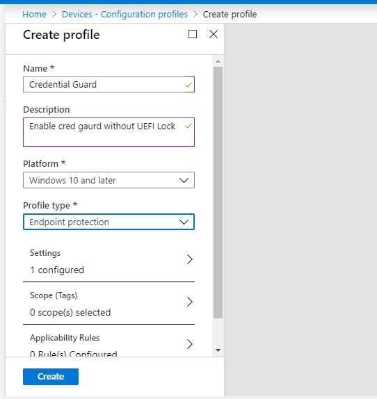 With that in mind, I’m going to show you the other method to deploy Credential Guard, via a configuration profile – just in case you aren’t using those Sec Baselines as yet – and we are going to be cautious with our initial approach and implement UEFI without lock.