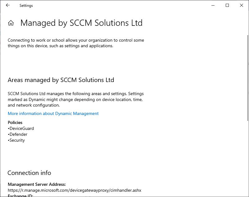 In the Settings app I can see that the DeviceGuard policy has been applied