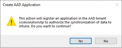Click OK to Create AAD Application when prompted. This action provisions a service principal and creates an Azure AD application registration which allows the sync to occur.