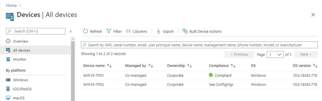 In the Microsoft Endpoint Manager admin center, in the Devices\All devices section, you’ll see the uploaded devices.