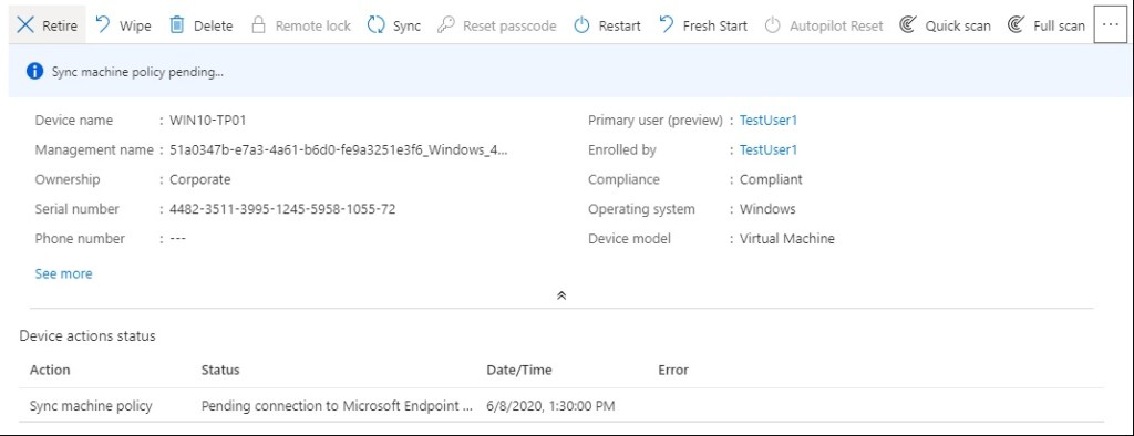 This is a role you can assign to in Intune admin role. So if you create a custom role you’ll see it listed as an option https://docs.microsoft.com/en-us/mem/intune/fundamentals/create-custom-role. Some of the built in roles already have this ability. It just allows that admin to send an action to endpoint – such as machine policy retrieval. Cheers Paul