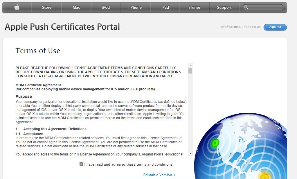 Click I agree to grant Microsoft permissions to send both user and device information to Apple.