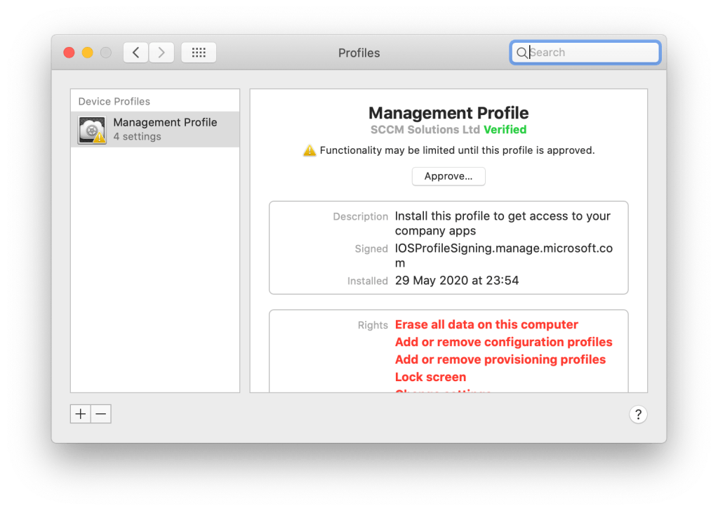 You’ll receive a Notification to Approve the management profile on the device. Click the notification.