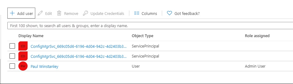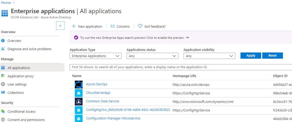 To become a admin user in the Configuration Manager Microservice application search for Enterprise Applications in the Azure Portal.