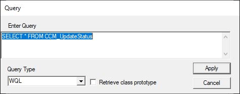 OK now I can query the CCM_UpdateStatus class in the query window. Click Apply.