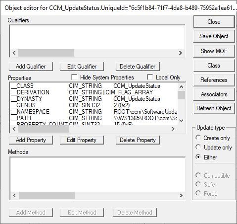 Here’s a couple of methods whereby you can quickly check the update status for a device, updates installed or missing, via WMI Explorer or WBEMtest. Sometimes it’s just quicker to eyeball the status directly on a device.