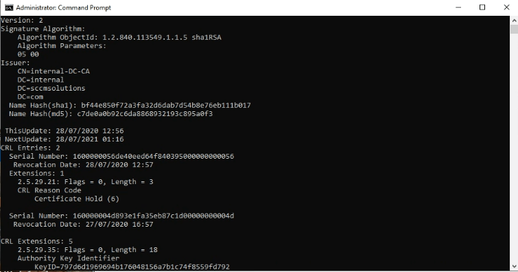 If you paste the URL into a broswer, this will download the CRL file. You can’t crack this open in Notepad, but you can use certutil to check the details of any revoked certificates.